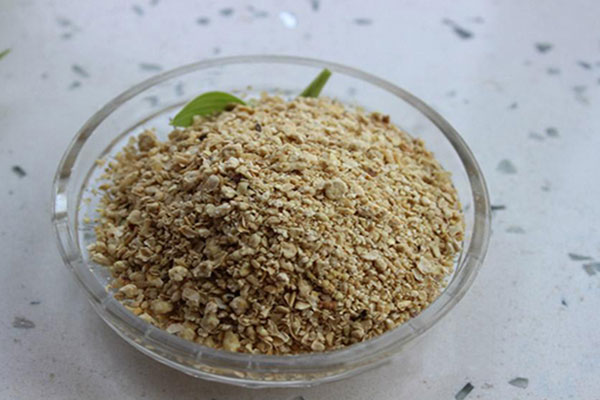 大豆粕粒度是指大豆粕中存在的结构尺寸不同的颗粒。虽然国标中未对豆粕粒度作具体要求,但是豆粕作为一种商品其颗粒大小对其交易价格有一定的影响。一般要求豆粕的形状有松散的颗粒状或片状。过碎过细或大的粕团都不受喜欢。导致豆粕过碎过细的因素主要有:大豆水分低;破碎粒度小;坯片薄;在蒸脱机内蒸炒时间长;豆粕水分低。大豆粕结块是大豆一次浸出生产中常见现象。结块的豆粕其水分、残溶、残油和尿素酶含量都比正常粕高出许多,其危害一是降低了豆粕的饲用价值,二是不便于饲料厂家的贮存和加工利用。导致豆粕结块的主要因素有:大豆的水分高;未成熟及未脱离后熟期的大豆用于制油;坯片入浸水分大;浸出温度低;直接水蒸汽质量差;蒸烘时间不足;料层太高等。此外,高温、高水分豆粕在粕库堆积贮存期间,极易结成大块,严重时还会生霉变质,直至失去饲用价值。